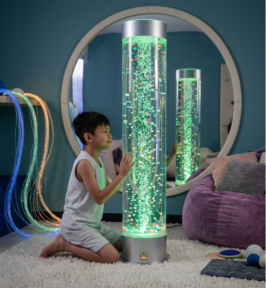 Mit der Blasensäule 150 cm erhalten Sie ein beeindruckendes und multifunktionales Hilfsmittel, das pädagogisch, therapeutisch und stimmungsvoll ist – ideal für Entspannung, sensorische Stimulation und visuelles Vergnügen für Kinder und Erwachsene.
