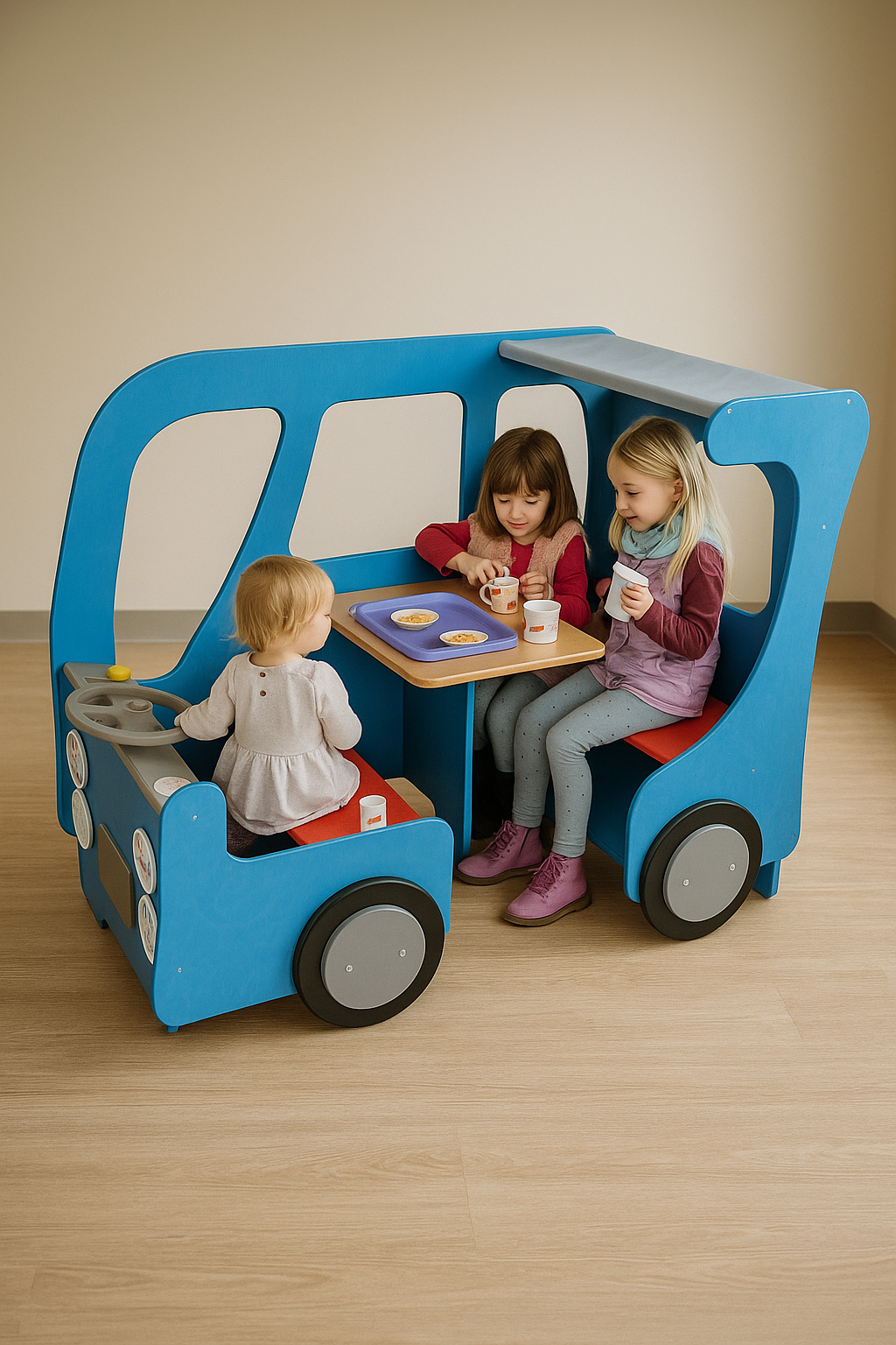Holzbus Spielecke – Pädagogisches Rollenspiel für Kinder