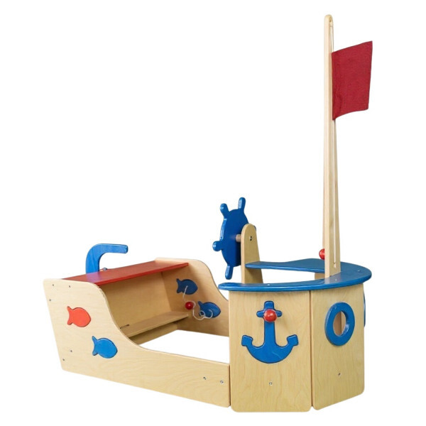 Die Flagge lässt sich mit einem festen Seil auf- und abbewegen, während der Anker geschickt an der Seitenwand befestigt wird. Vier Holzfische sind sicher am Schiff angebunden – perfekt zum Angeln! Ideal für Kindergärten, Schulen und sensorische Spielräume.