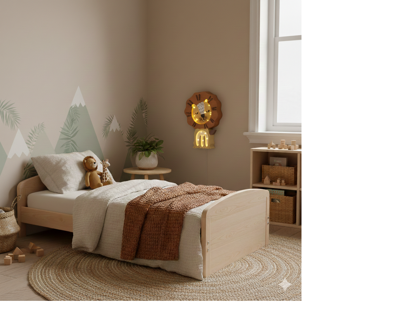 Das Holz-Nachtlicht Löwe ist eine stimmungsvolle und funktionale LED-Wandlampe, die speziell für Babyzimmer und Kinderzimmer entwickelt wurde. Diese handgefertigte Lampe verbindet ein warmes, verspieltes Design mit moderner Technologie und schafft eine sichere und beruhigende Schlafumgebung für kleine Kinder.