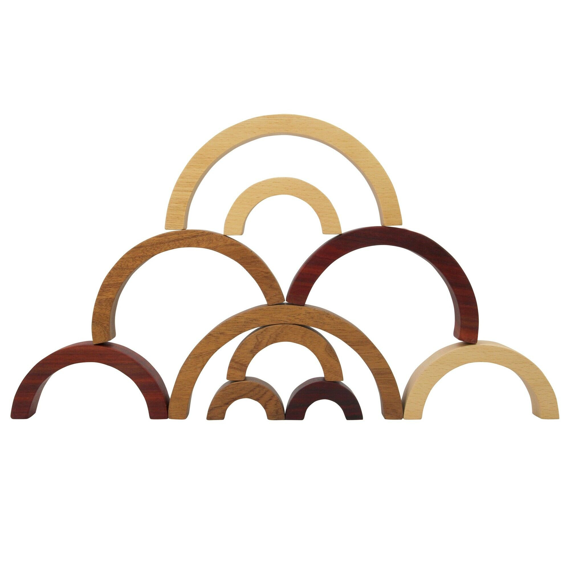 Dieses einzigartige Set hochwertiger Holzbogen verleiht dem sensorischen Spiel eine neue Dimension.