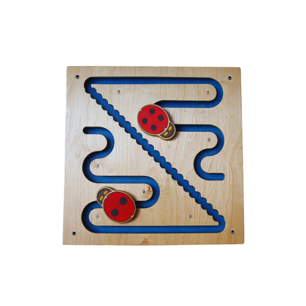 Das Marienkäfer-Wandpaneel bietet eine wunderschöne Kombination aus Bewegung, Klang und Lernen. Kinder können die Käfer entlang der geschwungenen Bahn führen und so auf spielerische Weise ihre motorischen Fähigkeiten trainieren.