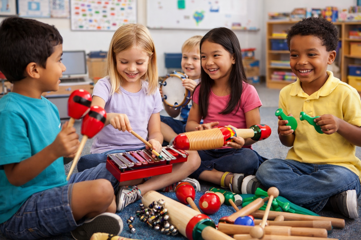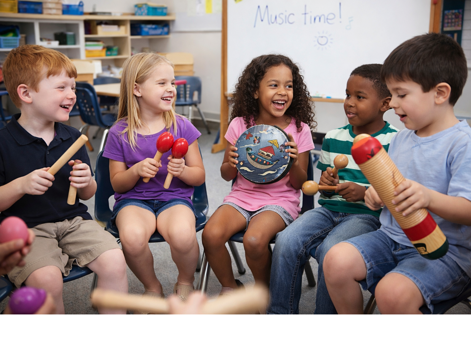 Die große Auswahl an Percussion-Instrumenten fördert das Rhythmusgefühl, aktives Zuhören und musikalischen Ausdruck. Durch Schlagen, Schütteln und Bewegen entwickeln Kinder sowohl ihre Fein- als auch Grobmotorik, die Hand-Augen-Koordination sowie das Körperbewusstsein. Gemeinsames Musizieren unterstützt zudem soziale Fähigkeiten wie Zusammenarbeit, Abwechseln und Kommunikation.