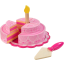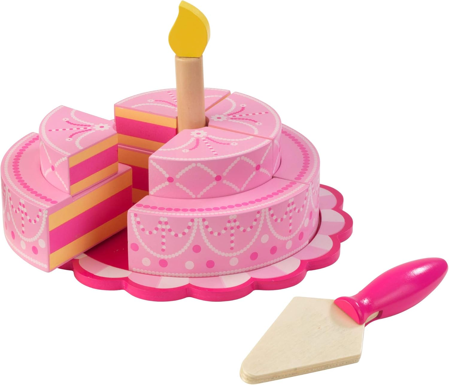 Das Set enthält 12 Teile, darunter 8 Kuchenstücke, und wird mit einem Kuchenheber mit rosa Griff geliefert. Dank der stabilen, cleveren Konstruktion ist der Kuchen bereits montiert und sofort spielbereit.
