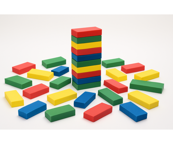 Bauen, stapeln und spielen. Diese Schaumbausteine können auch im Wasser verwendet werden. Die Blöcke schwimmen im Wasser. Weich und sicher.