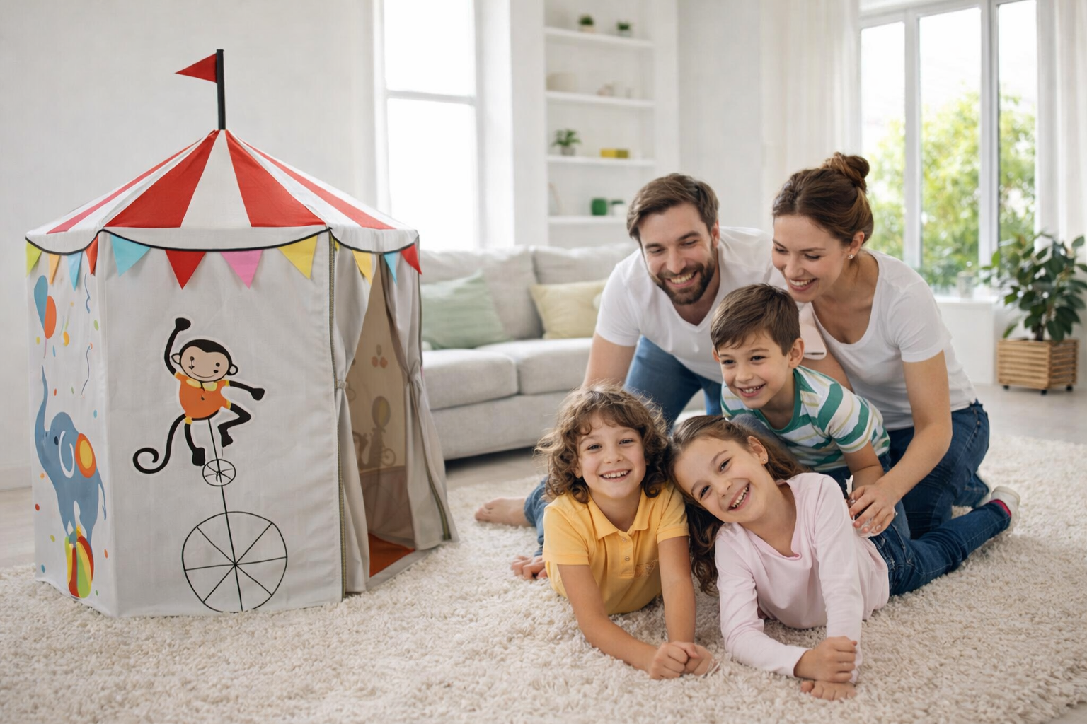 Zirkus Spielzelt für Kinder – Pädagogisches Rollenspiel-Spielhaus – Montessori-inspiriert – Für Innen- & Außenbereich